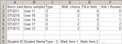 | Lignes suivantes : | Student_ID | Student_name | P | 0 to 10 | /1 to /10 | 0 to 10 | /1 to /10 | etc... |