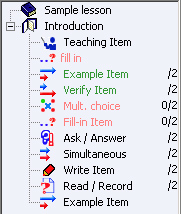 En mode pratique, la leçon demeure accessible en tout temps et les étudiants sont libres de la refaire à volonté. La couleur des titres dans le menu permet aux étudiants d'identifier instantanément les exercice auquel ils ont répondu, et dans le cas des questions à Compléter et à Choix Multiple, si leurs réponses étaient correctes ou non.