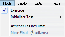 Le mode d'une activité ne peut être changé que lorsque le Tracker de l'activité est ouvert. Pour change de mode, sélectionnez Mode puis Exercice Ou Initialiser Test dans la barre de menus supérieure.
