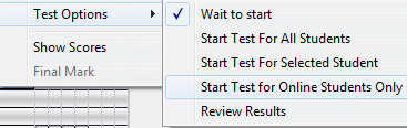 Cette option met le test en ligne seulement pour les étudiants qui sont en attente dans le Tracker, c'est à dire ceux dont le nom est en surbrillance bleue dans le tracker.